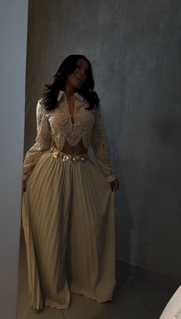 O conjunto perolado ficou incrivel com sandalia dourada! Look completo e arrasador. Amei a loja Morena Brazil. Correios demoraram mas o produto e 10/10.