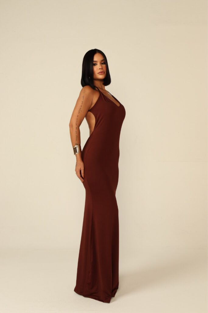 Vestido Longo de Alcinha Camila Marrom